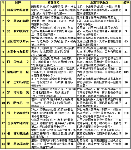 赛果预测(4场焦点) :